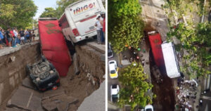 Autoridades ya investigan las causas del socavón que tiene 20 metros de largo, seis metros de profundidad y cuatro metros de ancho