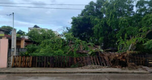 Personal de Bomberos acudió al sitio para retirar las pesadas ramas y el tronco.