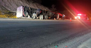 Cerca de las 2:00 de la mañana reportaron una camioneta llantas arriba sobre el bulevar Adolfo López Mateos a la salida del puente Tampico.