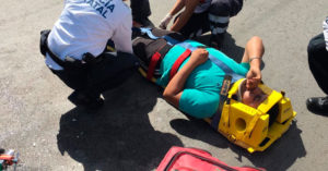 Un joven sufrió una grave lesión, luego que al conducir su motocicleta a exceso de velocidad, pierde control y termina sobre el pavimento, en el bulevar Hombres Ilustres