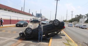 Vuelca automóvil frente a la refinería Francisco l. Madero