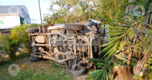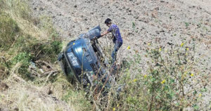 Al circular a exceso de velocidad, el operador pierde control y termina accidentado