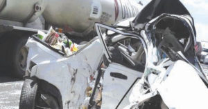Impacta brutalmente su camioneta contra un tractocamión que estiraba tanques de gas a la altura del ejido Francisco Villa de San Fernando