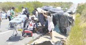 Dos resultan heridos, uno está delicado, luego que el conductor del vehículo en que viajaban pierde control y maromea en el kilómetro 63 carretera a Zaragoza