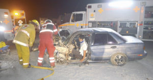Un vehículo aparentemente invade carril y choca de manera brutal contra otro, quedando uno de los choferes prensado y las unidades despedazadas en la “Rumbo Nuevo”