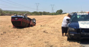 Una llanta trasera de su camioneta reventó y el conductor pierde control y termina dando varias volteretas en el kilómetro 54 de la carretera a Zaragoza