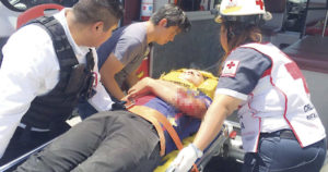 La unidad de fuerza motriz, tumba al empleado en el 21 Juárez, quien sufrió una herida en el brazo derecho