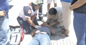 Se encontraba impermeabilizando el techo de un centro comercial cuando pierde el equilibrio; unas cajas de cartón amortiguan el golpe