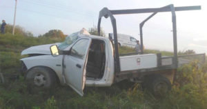 Un campesino sale disparado de la unidad, cuando al circular a exceso de velocidad pierde el control y vuelca en una brecha que conduce al ejido Campesinos de Jiménez; su hijo está delicado