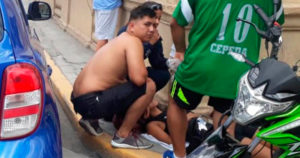 Conductor de un compacto trato de ganarle al ámbar del semáforo y se llevo de corbata al tripulante de la moto