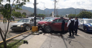 Una persona lesionada y tres vehículos dañados fue el resultado que dejó un accidente provocado por una unidad, cuya conductora trató de entrar a estacionamiento de centro comercial sin tomar las debidas precauciones