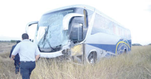La unidad de pasajeros derrapa y se sale de la carretera, afortunadamente nadie resulta herido en el tramo de la carretera Matamoros-Victoria