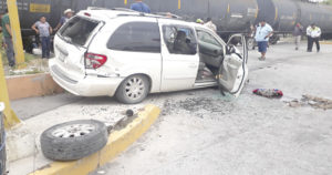 Una mujer que manejaba una camioneta es embestida de manera brutal por el tren, que la proyecta contra otros dos vehículos en el Eje Vial y cruce con avenida de las Américas; la conductora está delicada