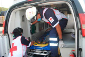 Dos señoras y tres niños salieron golpeados al salirse del camino cuando eran puchados por unos empleados que se ofrecieron a ayudarlas debido a que ni Policía Federal Preventiva División Caminos ni Estatal quisieron ayudarlos.