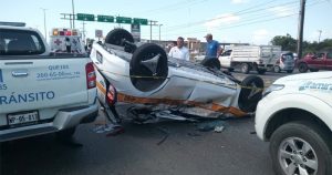 Los informes señalan que una camioneta particular color rojo que era manejada a velocidad inmoderada sobre el carril sur a norte se estrelló contra un vehículo de alquiler Nissan March, el cual terminó volcado con las llantas hacia arriba
