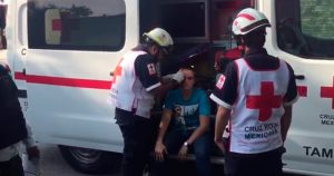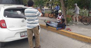 Motociclista que salió en busca de empleo es embestido y proyectado contra un microbús en el eje vial con calle Ciudad Mier; sufre fractura expuesta de pierna derecha