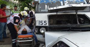 La unidad de transporte provoca la múltiple carambola resultando grave una pasajera en la colonia “Adolfo López Mateos”