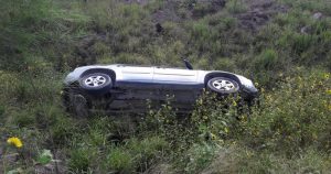Pierde control del volante y termina entre el monte; pese a lo aparatoso, resulta ilesa