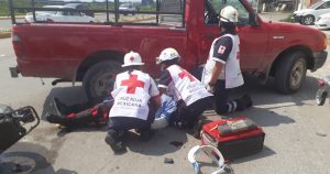 Una camioneta le cierra el paso a un empleado, provocando que se estrelle con su motocicleta en la parte lateral de la unidad sufriendo traumatismo craneoencefálico