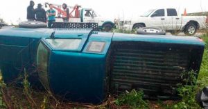 Se dirigían a su residencia cuando la unidad derrapa por el pavimento mojado y maromea en la carretera estatal a la Laguna Madre