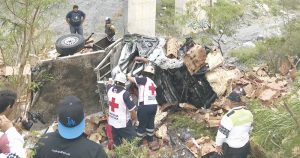 La camioneta en que viajaba de copiloto fue impactada por un tráiler y proyectada hasta un barranco en la carretera Rumbo Nuevo; el chofer de la troca está delicado