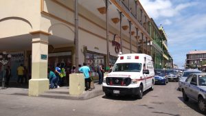 Una mujer de la tercera edad al esperar tomar un carro de ruta se desmayo recibiendo el auxilio de primera instancia de manos de comerciantes.