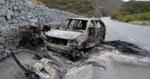 Una camioneta se estrella contra un muro de contención de piedra y luego se incendia, sus ocupantes escapan en la Rumbo Nuevo