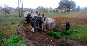 Exceso de velocidad y pavimento mojado por la lluvia provoca que el chofer se descontrole y salga de la carretera