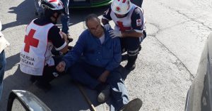 Persona de la tercera edad trata de cruzar una avenida, pero el chofer de una camioneta al virar hacia el lado por donde estaba el peatón acaba por tumbarlo