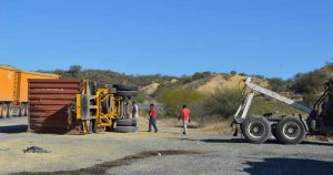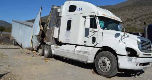 Tráiler cargado con 28 toneladas de tomate se sale de la carretera en el tramo Palmillas-Tula y el chofer resulta herido