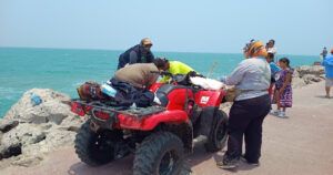 El espécimen fue extraído del lugar con ayuda de equipo especializado para su traslado al campo tortuguero.