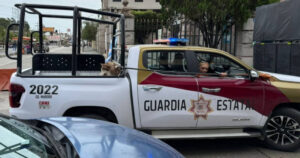 Elementos de la Guardia Estatal aseguraron al animal y lo trasladaron en la parte trasera de la patrulla 2022 para retirarlo de la vía pública.