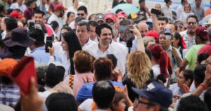 El aspirante de la coalición Juntos Sigamos Haciendo Historia, ayer recorrió la colonia Esfuerzo Obrero