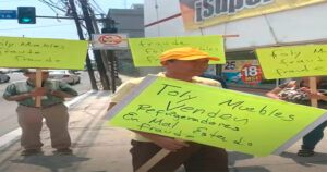Los inconformes se plantaron afuera de la tienda Foly Muebles, situada en Avenida Hidalgo y calle Francita, para exigir una solución al problema.