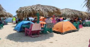 Familias aprovecharon la seguridad en la zona de playa y acamparon en el máximo paseo.