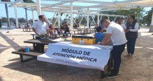 Instalan módulo de atención médica en el parque de la laguna del carpintero