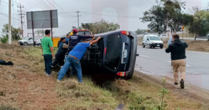 Los elementos de la corporaciones de rescate que todavía permanecían en el sitio, así como los agentes de tránsito lograron acomodar la camioneta y rescatar a la pareja que viajaba en la unidad