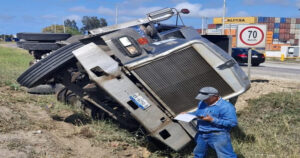 Aparentemente el operador perdió el control del vehículo y se proyectó hacia la parte central de la vialidad, donde el camión terminó volcando hacia un costado