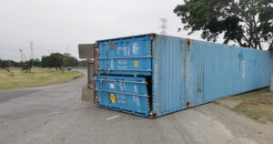 l recipiente de carga sufrió daños materiales, al momento de caer se arrastró unos metros y se detuvo al chocar contra un árbol
