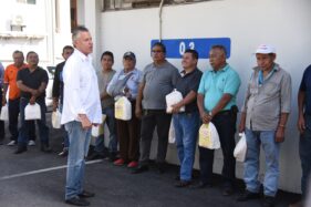El alcalde encabezó la entrega de pollos para la cena navideña a personas de la tercera edad y a trabajadores dedicados al aseo de calzado