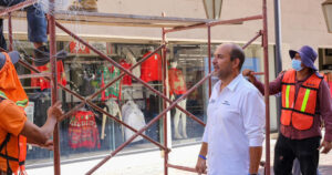José Schekaibán, encabezó las cuadrillas de Servicios Públicos que comenzaron con la instalación de guías de luces