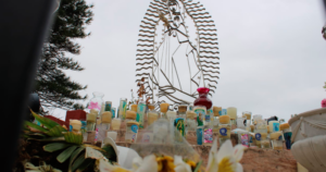 El ratón ya no tiene orejas grandes y el rosa del oso de peluche que está a su lado está desteñido y maltratado. Los objetos