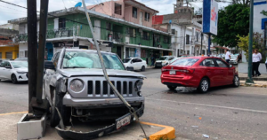 Tremendo susto se llevaron los conductores de dos unidades tras impactarse de lleno en el cruce de las calles Alarcón y Obregón en la zona
