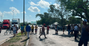 Así se encuentra la carretera Tampico-Valles, bloqueada por residentes de la colonia Morelos y Vicente Guerrero sector Moscú. Los vecinos comentan que llevan 3 días