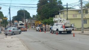 CIUDAD MADERO, TAMAULIPAS. – La mañana del jueves, personal y unidades de la CFE arribaron al sector Francisco Villa en ciudad Madero, para atender las
