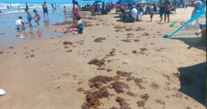 Las algas llegaron a la orilla de Miramar desde la madrugada del pasado martes.