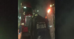 La oportuna intervención de los elementos de Bomberos evitó que las llamas alcanzaran un vehículo de carga que se encontraba estacionado