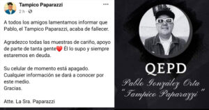La triste noticia fue dada a conocer a través de su página de Facebook por su esposa Rocío conocida como «La Señora Paparazzi»