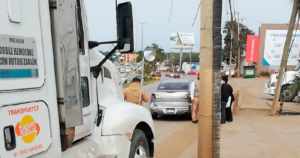 El conductor del trailer reconoce que su vehículo sufre una falla mecánica, por fortuna los vehículos que transitaban al lado no sufren algún accidente
