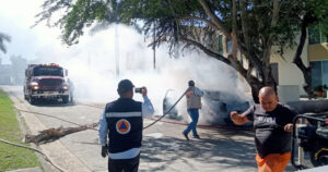Manejaba en estado de ebriedad y se le quema el auto